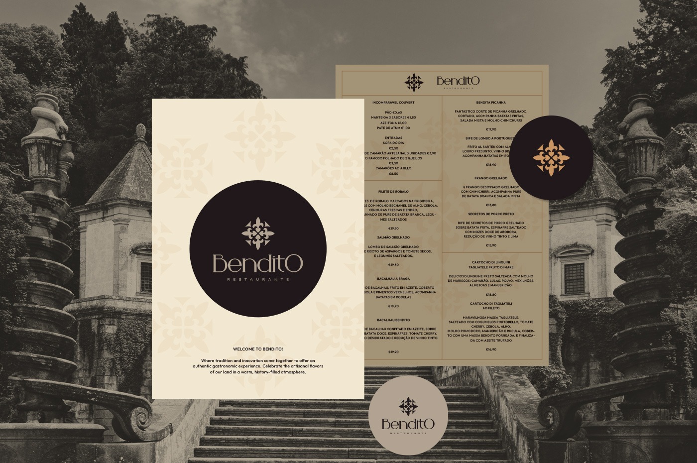 O que emergiu foi uma identidade visual que respeita as raízes gastronómicas do Bendito, mas olha para o futuro com estética contemporânea. Um sistema flexível, acolhedor e cheio de significado, capaz de fortalecer a marca em todos os seus pontos de contato e traduzir, com clareza, a essência do restaurante: tradição servida com modernidade.